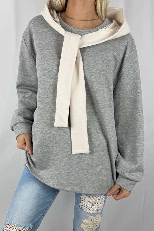 Oversize Pullover mit Schal-Detail-Grau