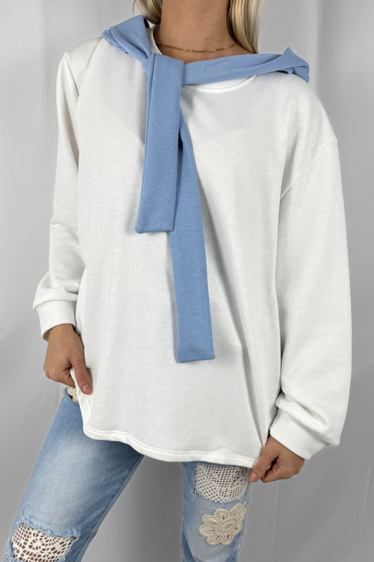 Oversize Pullover mit Schal-Detail-Weiß