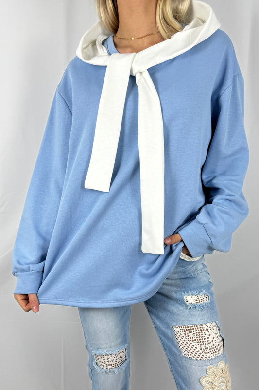 Oversize Pullover mit Schal-Detail-Hell Blau
