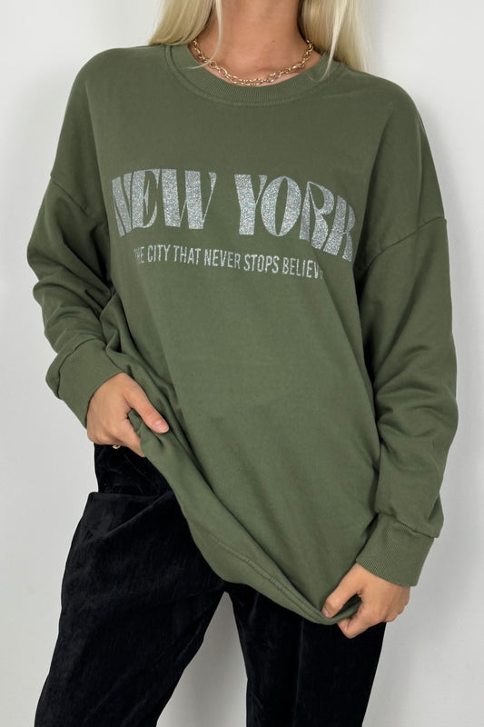 Oversize Sweatshirt New York –Olive Grün