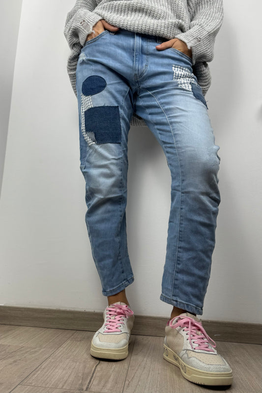 Patchwork Boyfriend Jeans mit Stickdetails