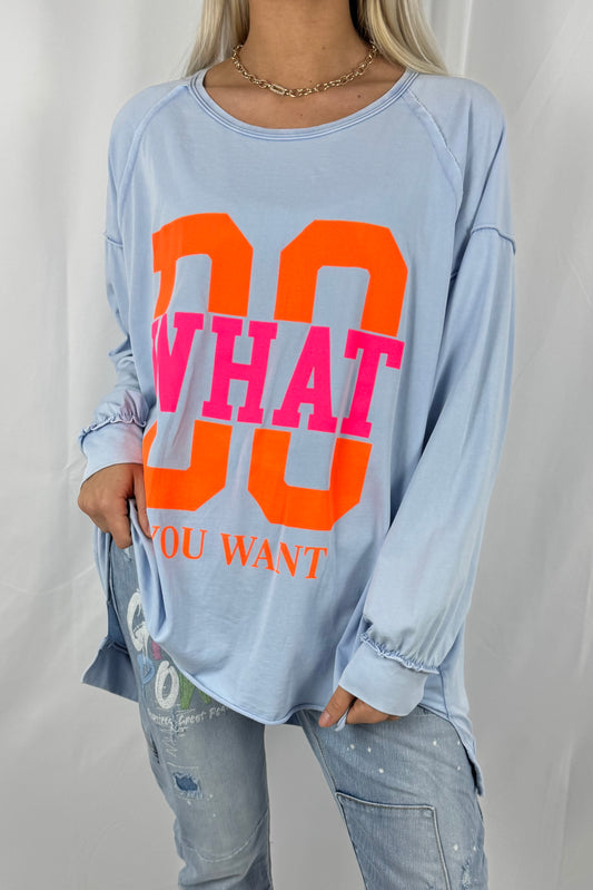 Shirt mit „DO WHAT YOU WANT“ Statement-Print-Hell Blau