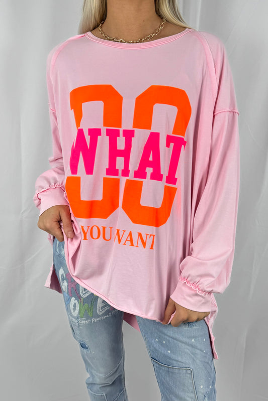 Shirt mit „DO WHAT YOU WANT“ Statement-Print- Rosa