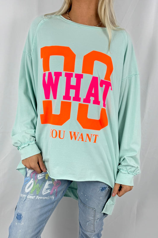 Shirt mit „DO WHAT YOU WANT“ Statement-Print-Mint