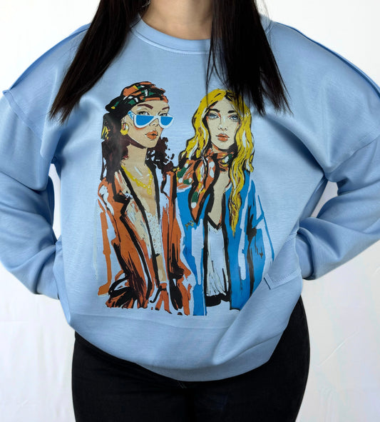 Damen-Sweatshirt mit Frontprint – Blau | Casual Look