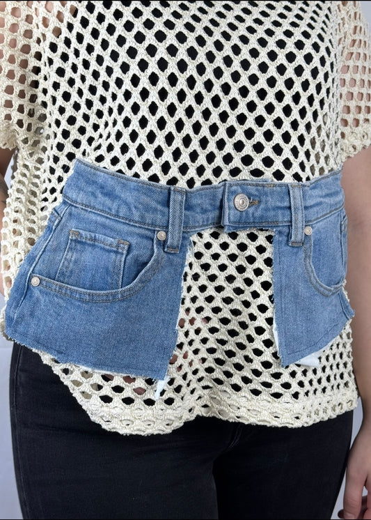 Strickpullover mit Jeansdetails – kreativer Materialmix