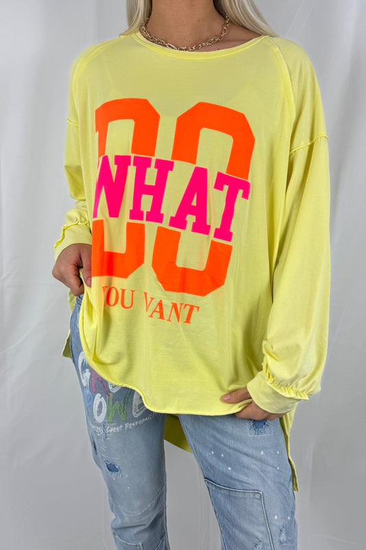 Shirt mit „DO WHAT YOU WANT“ Statement-Print- Gelb