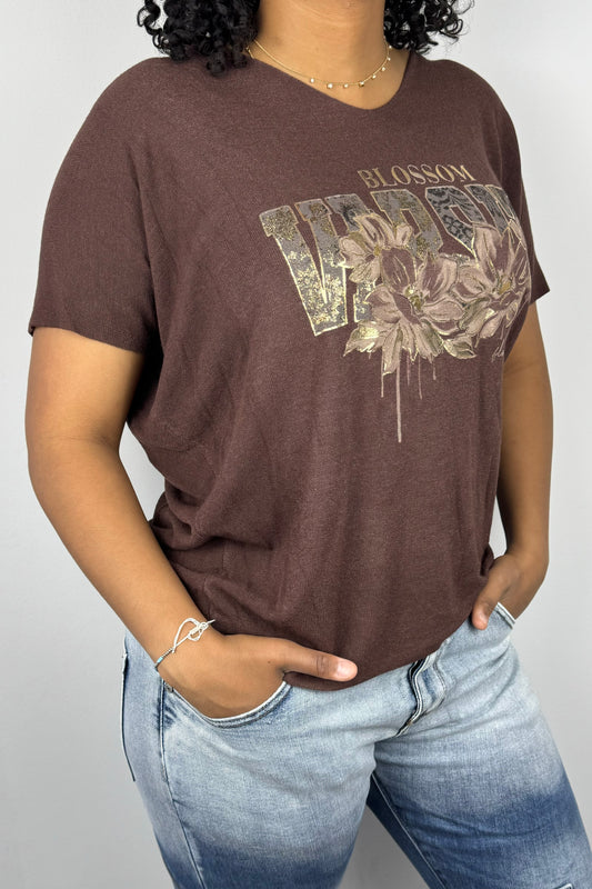 Oversized Shirt mit „Blossom Harmony“-Print und Blumenmotiv-Choco