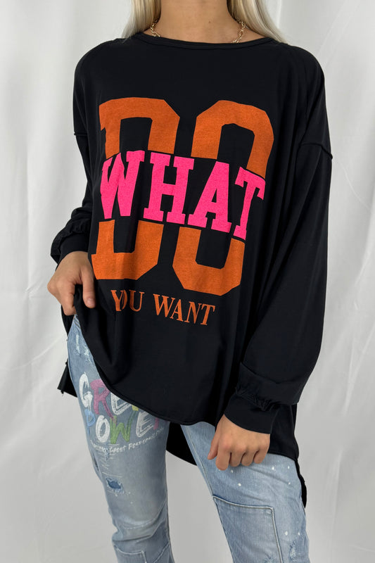 Shirt mit „DO WHAT YOU WANT“ Statement-Print-Schwarz