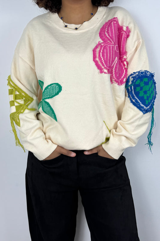 Strickshirt mit Schriftzug „Salut!“ –Choco