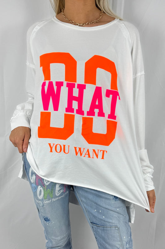 Shirt mit „DO WHAT YOU WANT“ Statement-Print-Weiß