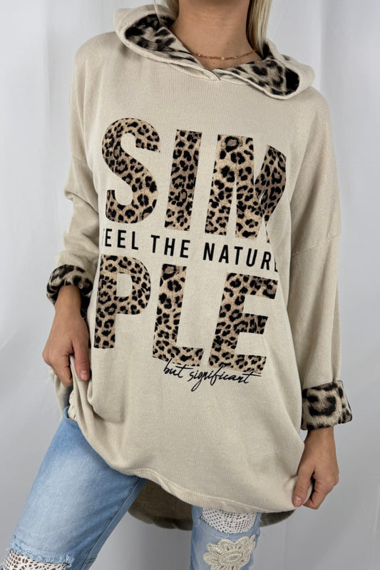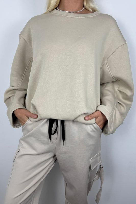 Damen Oversize Sweatshirt mit Rundhalsausschnitt –Beige