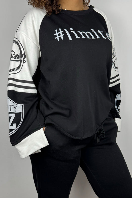 Oversize Damen Hoodie mit Farb-Block Design-Schwarz