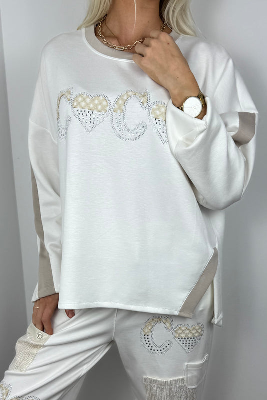 Stylisches Shirt mit Schmuckstein-Details-Weiß