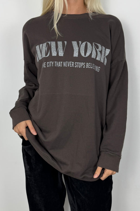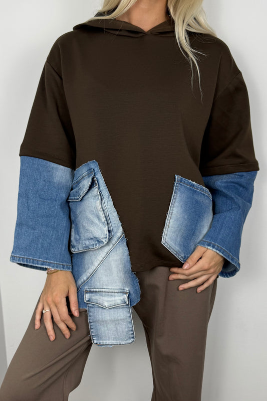 Trendiger Damen-Pullover mit Jeans-Details-Choco