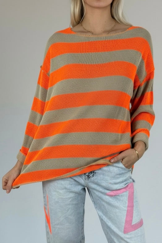 Gestreiftes Shirt mit Rundhalsausschnitt-Pink