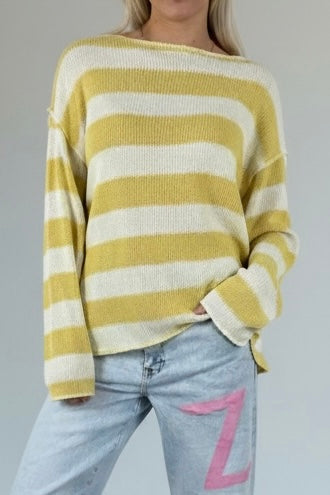 Gestreiftes Shirt mit Rundhalsausschnitt-Gelb