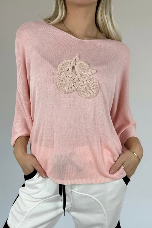 Shirt mit V-Ausschnitt & gehäkelter Applikation-Rosa