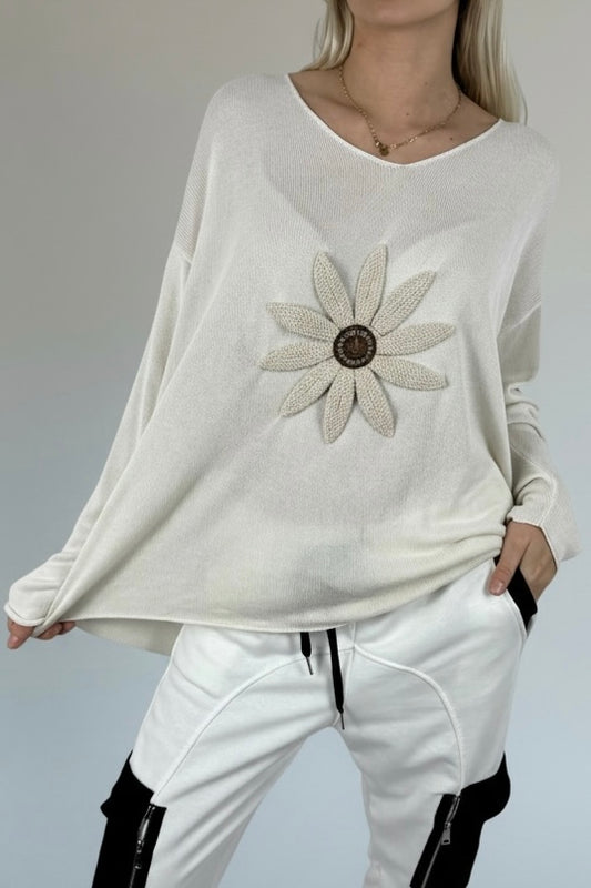Oversize Sweatshirt mit Patch-Detail-Weiß