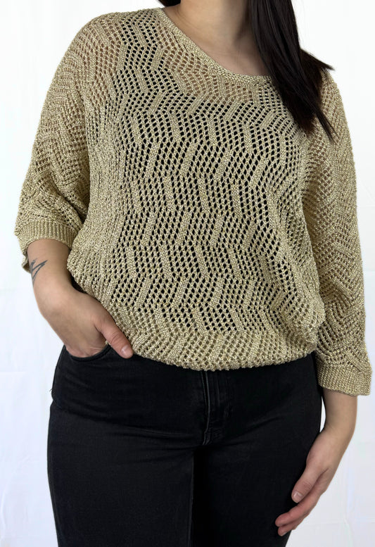 Beiges T-Shirt mit Jeansdetails – trendiger Materialmix