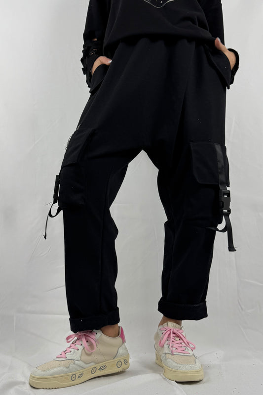 Cargo Jogpants mit Kette & Taschen –Schwarz