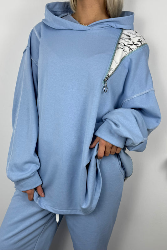 Asymmetrischer Hoodie mit Zipper -Hell blau