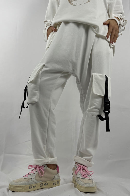Cargo Jogpants mit Kette & Taschen –Weiß
