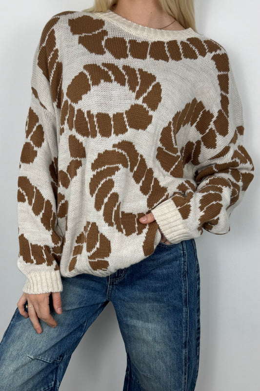Shirt mit Häkelblumen & Tunnelzug-Beige
