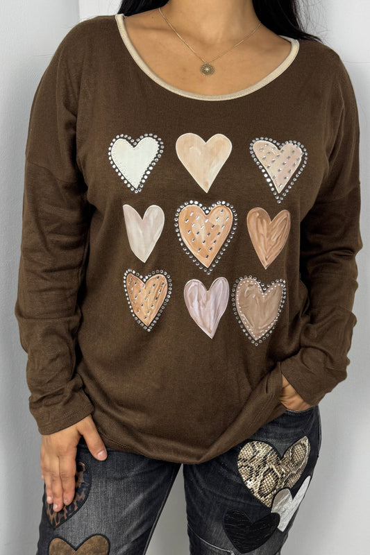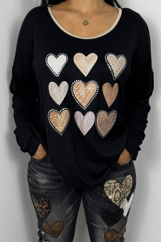 Shirt mit glitzernden Herzapplikationen – hochwertiger Viskosemix & bequeme Weite