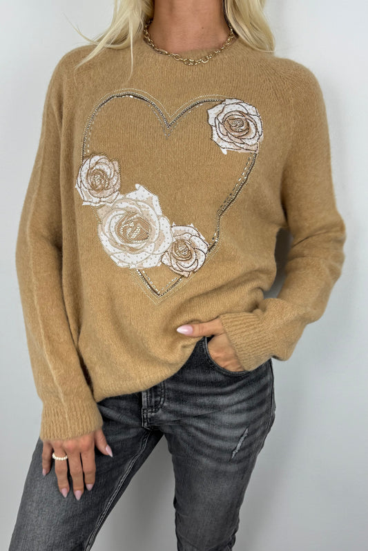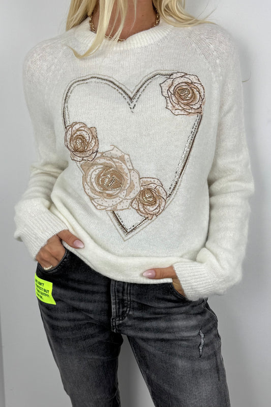 Pullover mit Herz- und Rosen-Design-Schwarz