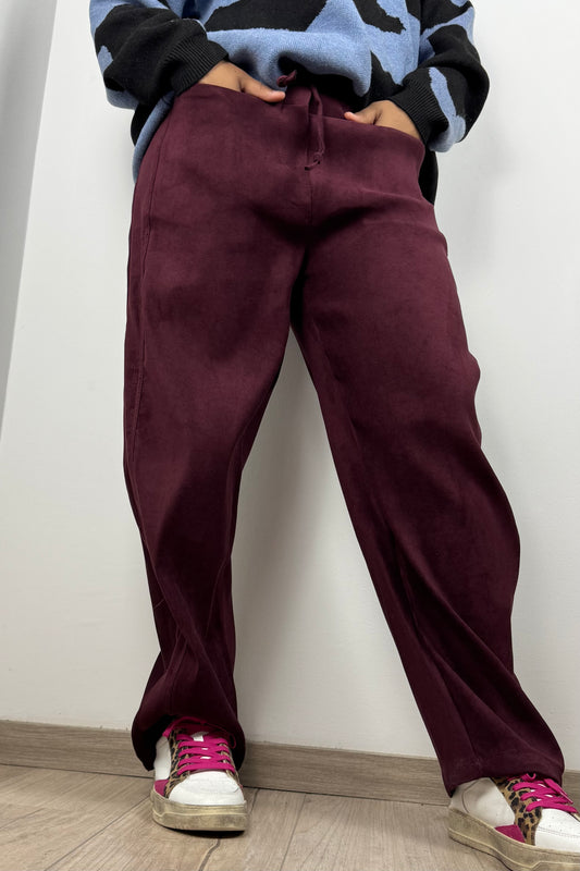 Soft Touch Hose mit Bindegürtel –Bordeux