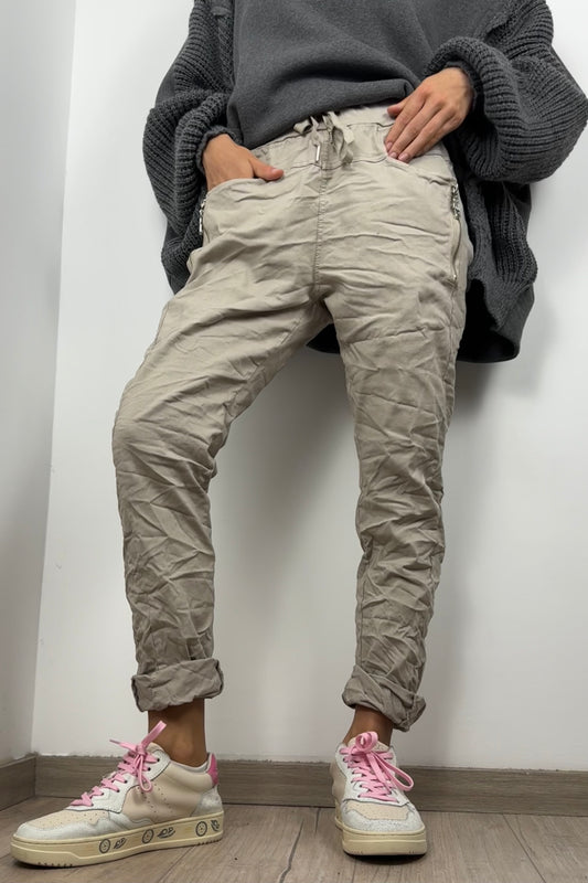 Stretchhose mit Reißverschluss-Detail –Beige