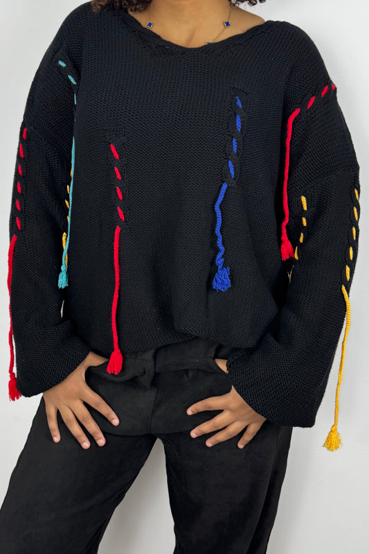 Strickpullover mit bunten Details – Schwarz
