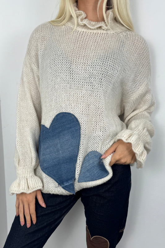 Strickpullover mit Herzmotiv –Beige