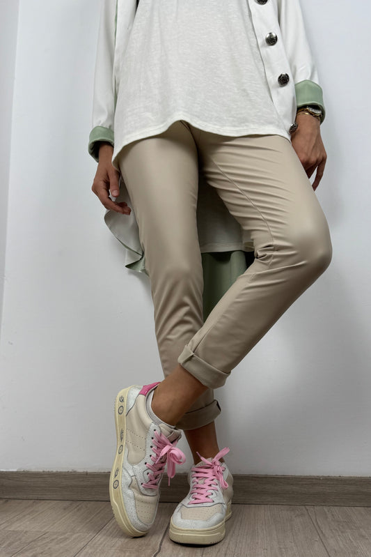 Stretch Leggings mit High-Waist Bund –Beige