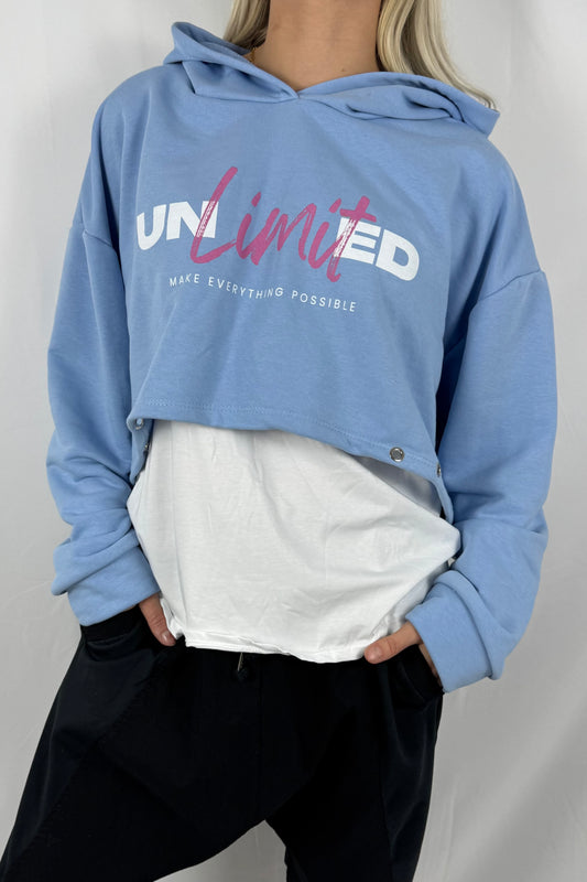 Cropped Hoodie „Unlimited – Make Everything Possible“-Hellblau