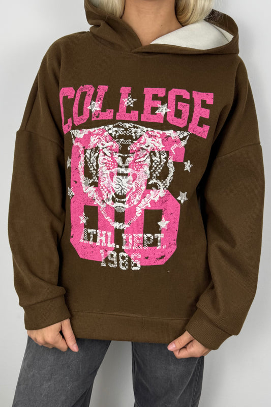 College Hoodie mit Tigerprint und Knopfdetails-Choco