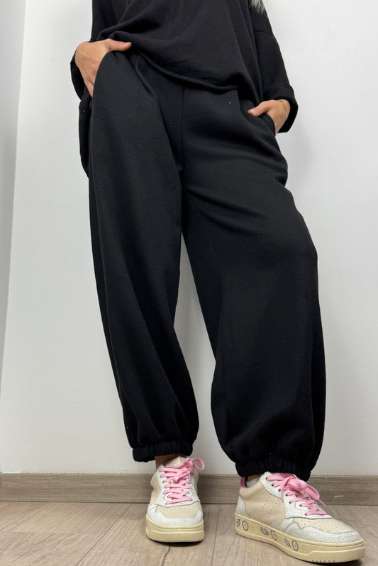 Damen Hose mit Gummibund und weitem Bein –Schwarz