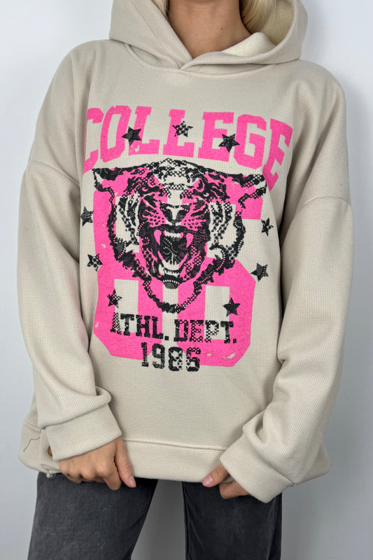 College Hoodie mit Tigerprint und Knopfdetails-Beige