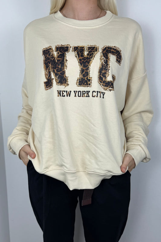 Sweatshirt mit „Charme de Paris“ Print und Karodetail-Beige