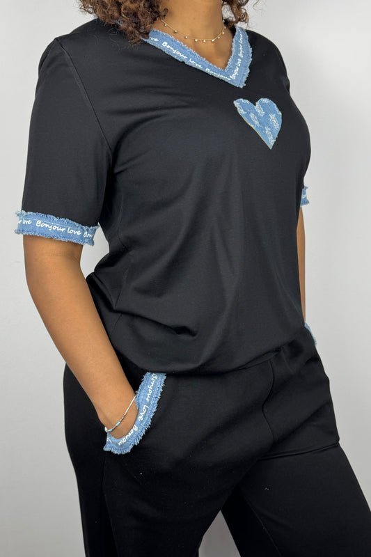 T-Shirt mit Herz-Print & Jeans-Details – liebevoll & trendy