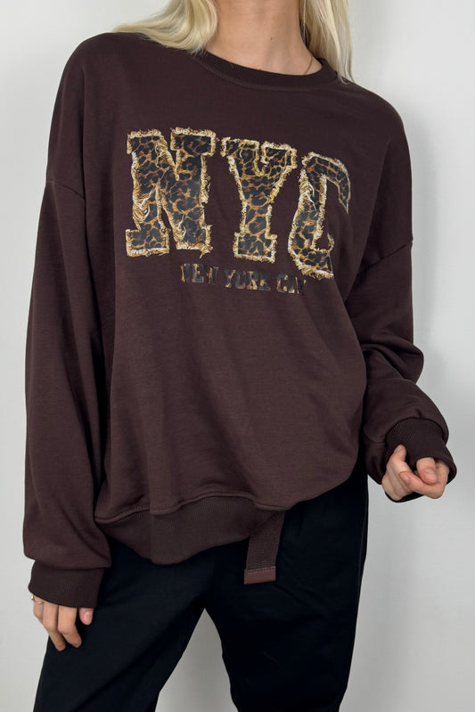 Sweatshirt mit „Charme de Paris“ Print und Karodetail-Choco