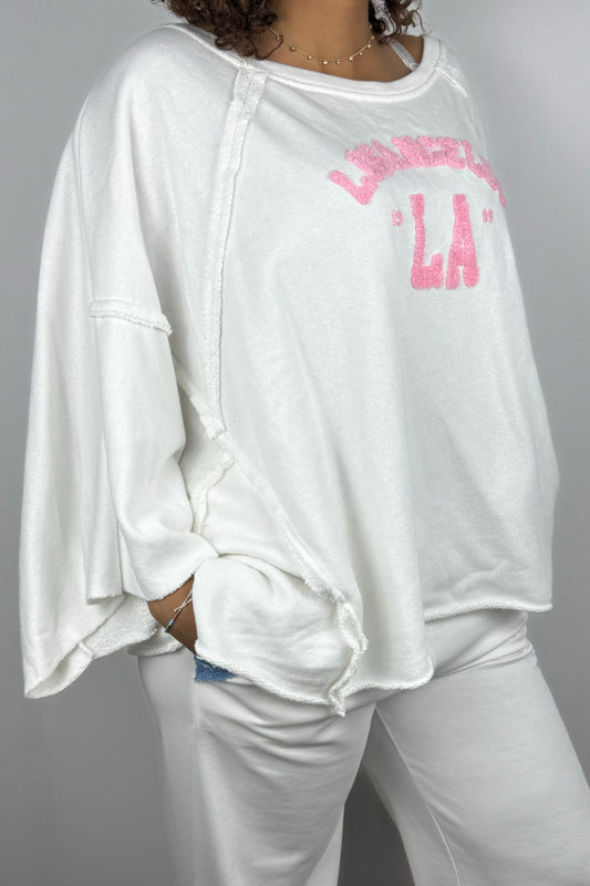 Sweatshirt mit „Charme de Paris“ Print und Karodetail-Weiß