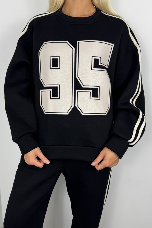 Trendiger Oversize-Sweater mit Print „95“ –Schwarz
