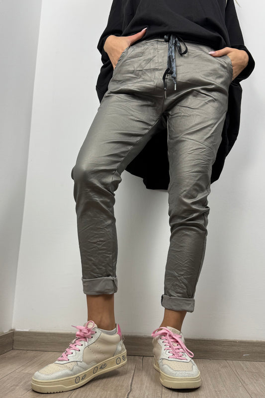 Glanz-Effekt Jogpants mit Kordelzug –Silber
