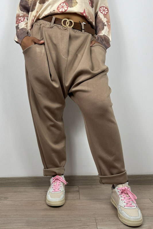 Haremshose mit Gürtel – lockerer Schnitt & modischer Tieffall-Mud