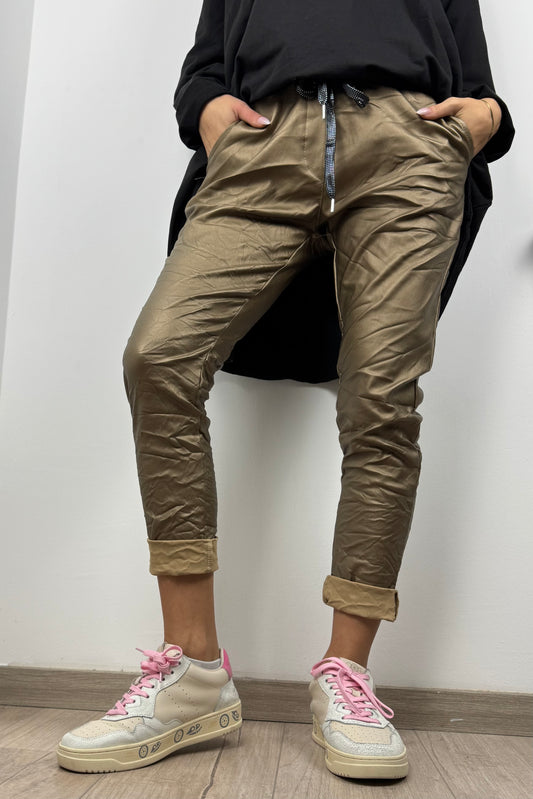 Glanz-Effekt Jogpants mit Kordelzug –gold