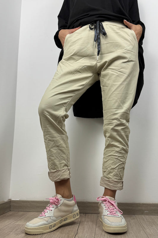 Glanz-Effekt Jogpants mit Kordelzug –Beige