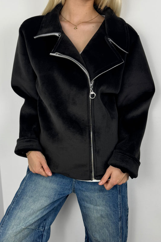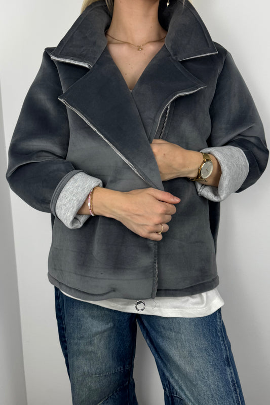Jacke mit Teddyfutter und Strickärmeln –Choco