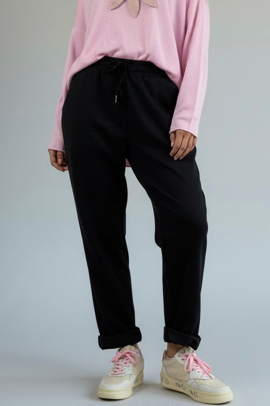 Hose mit Häkelblumen & Kordelzug-Schwarz